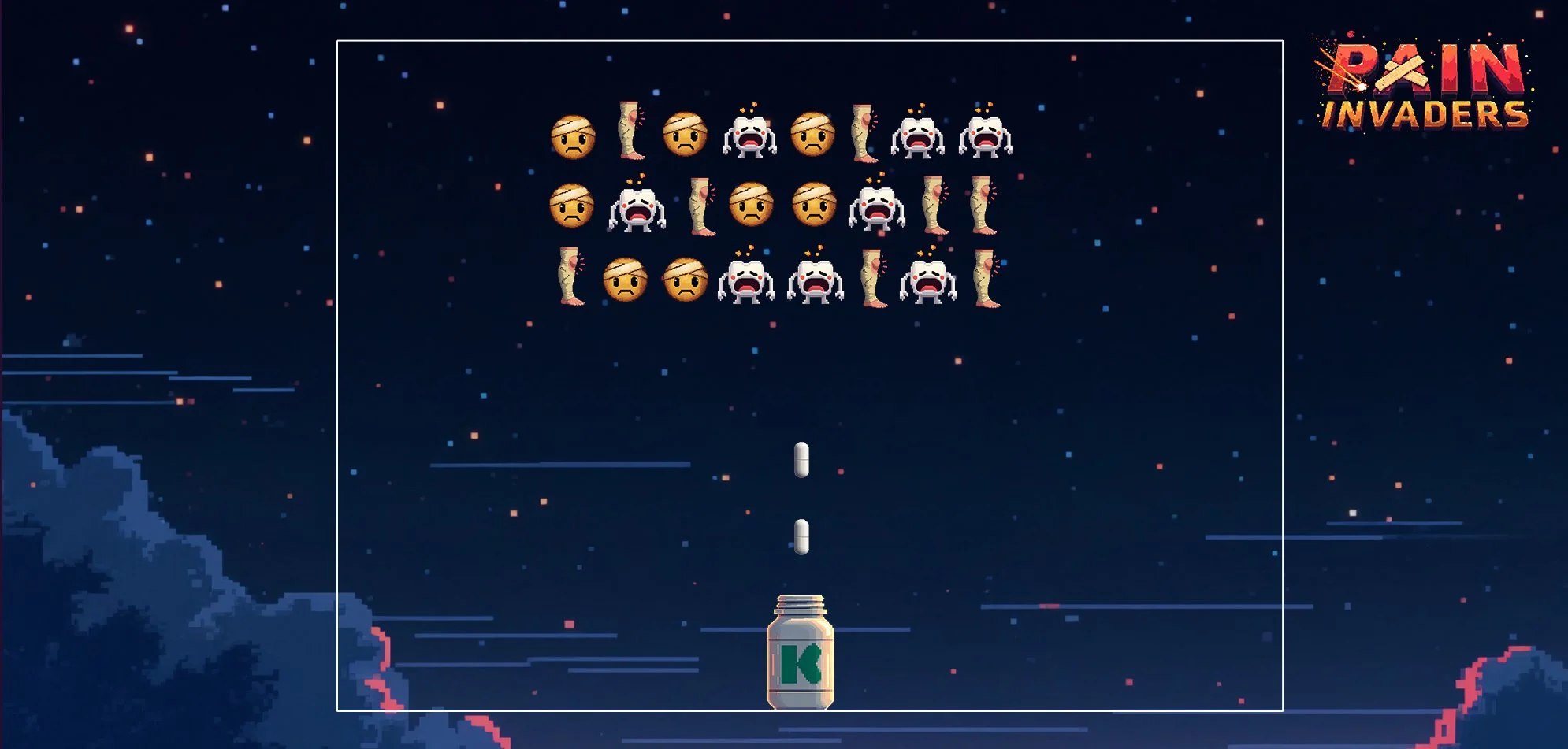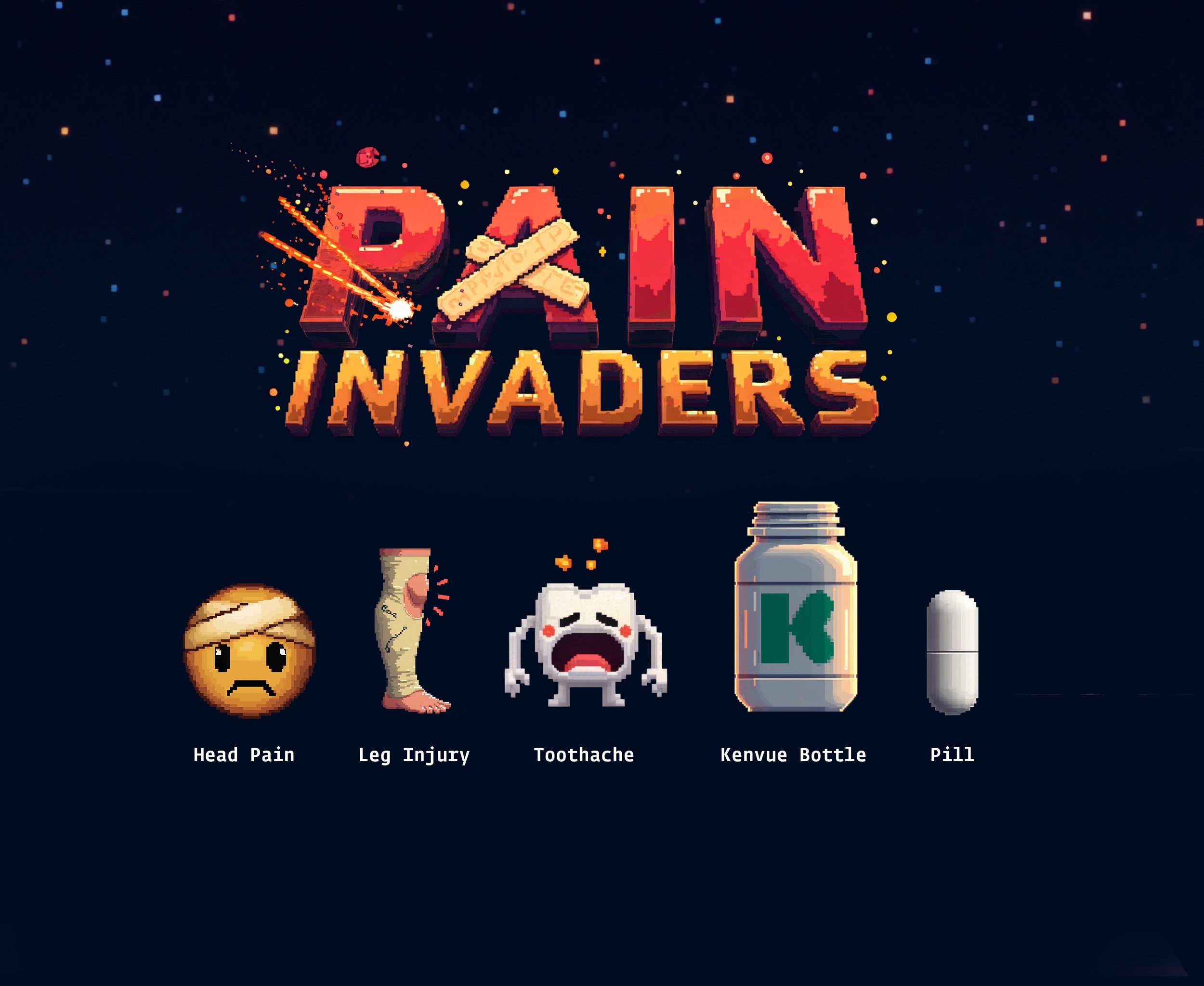 In the week leading up to the pitch, we sent the client team Pain Invaders—a custom retro arcade game built around the idea of taking down pain. It was a playful, unexpected way to bring the pitch to life before we ever entered the room, while showing the kind of inventive thinking behind the work.