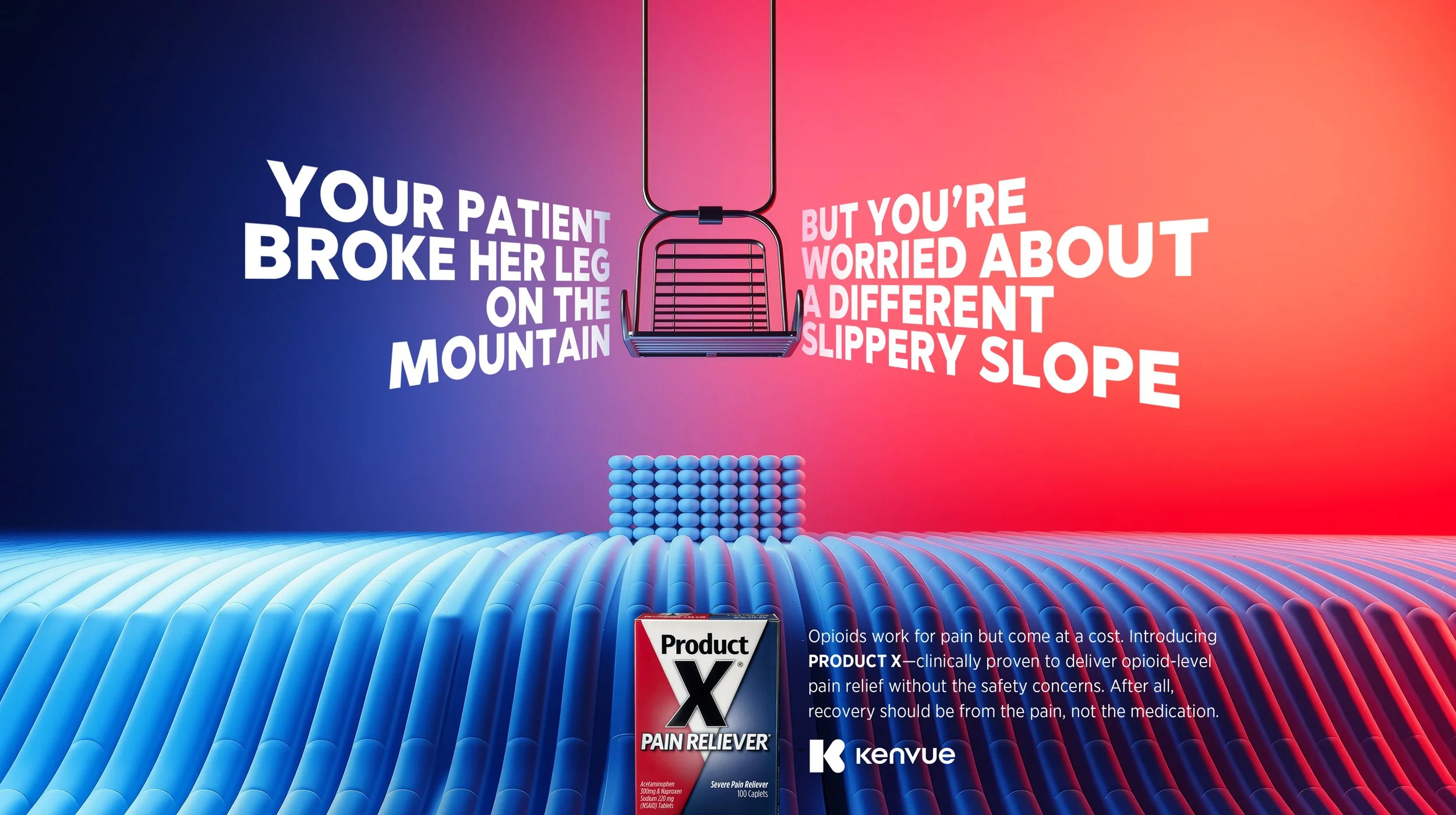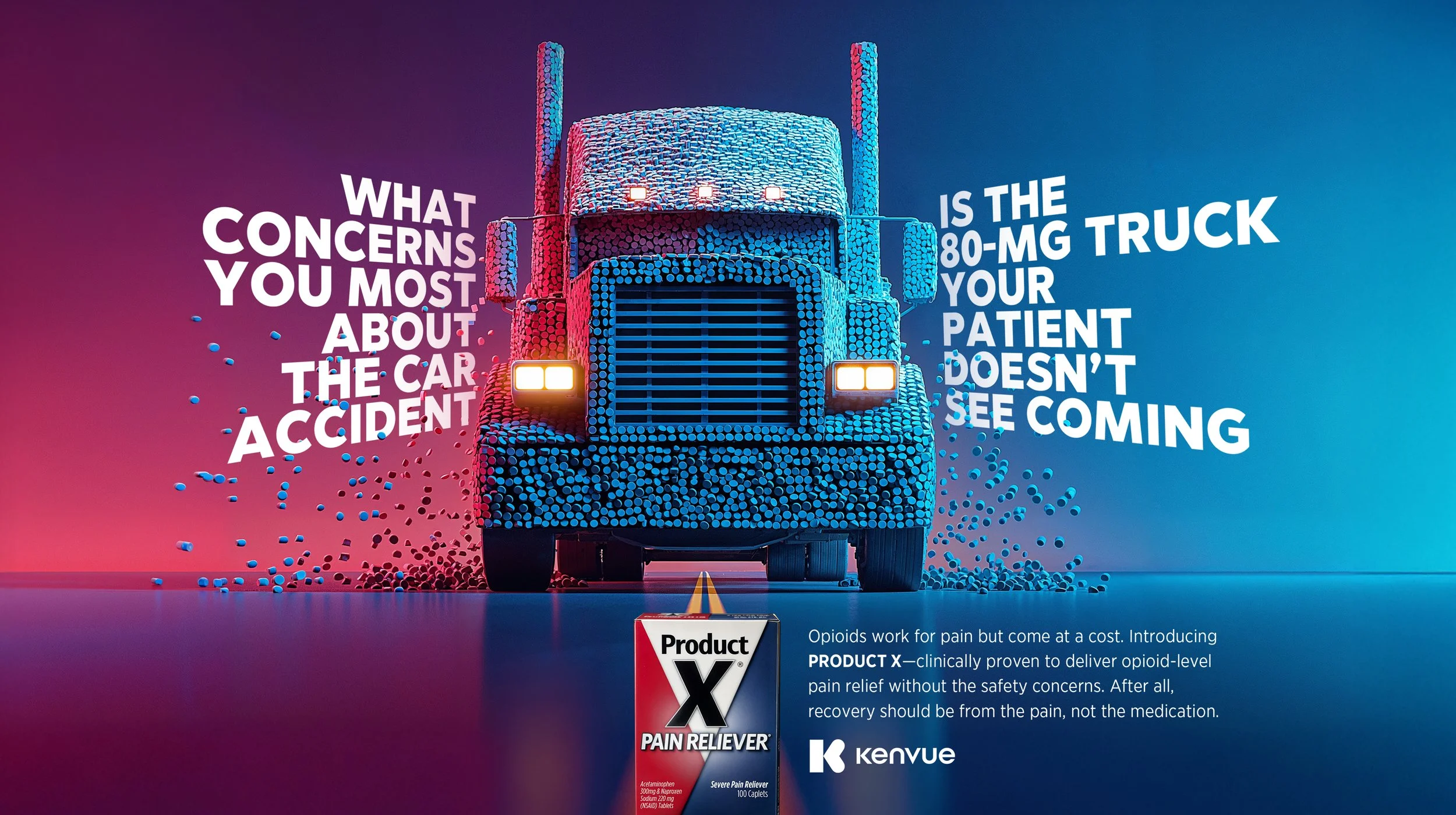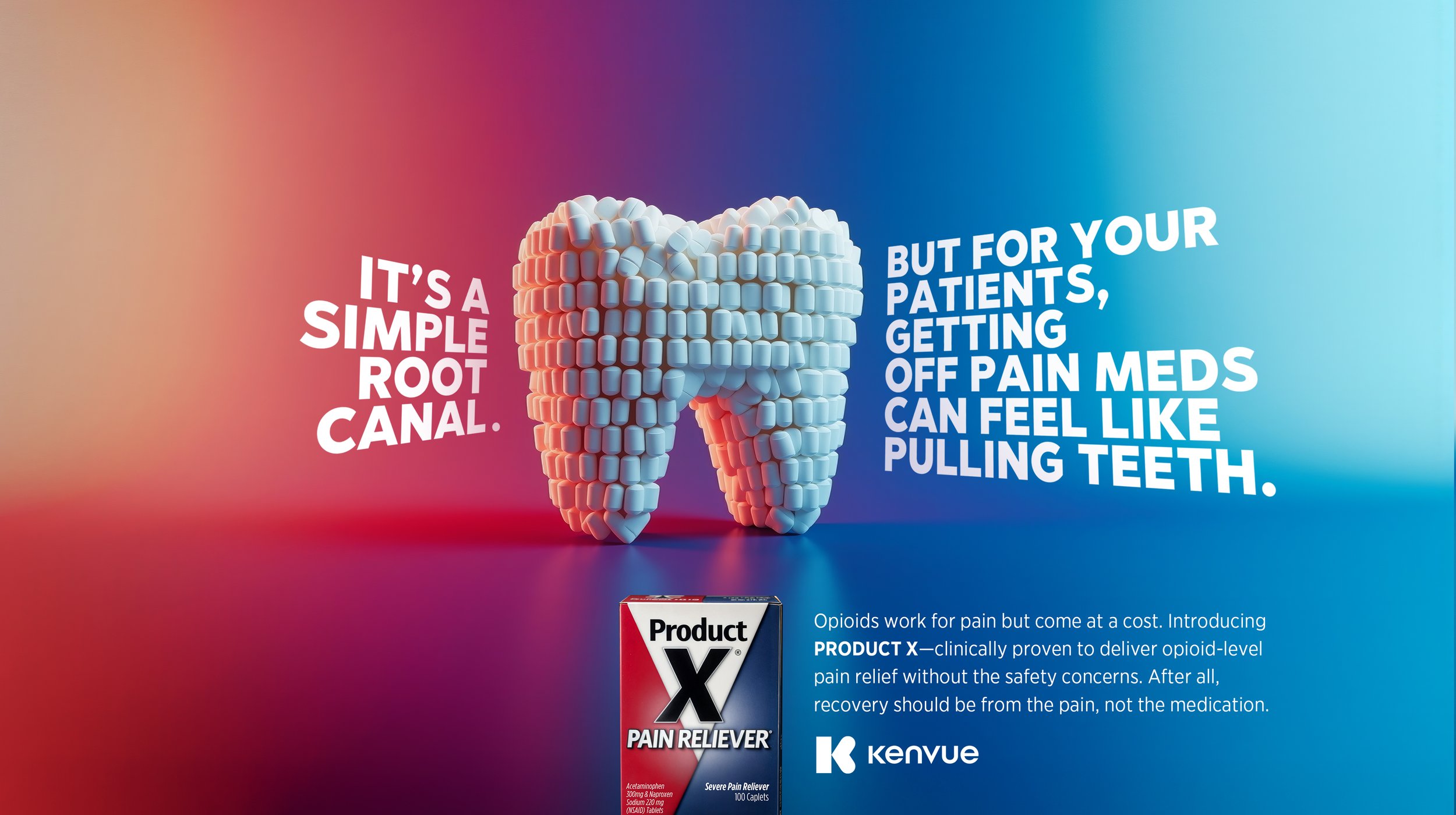This unbranded campaign for Kenvue reframes pain management around a powerful promise: opioid-level relief without the risk of addiction or dependence. In a category shaped by tradeoffs, the idea introduces a new standard—real efficacy without the baggage of opioids.