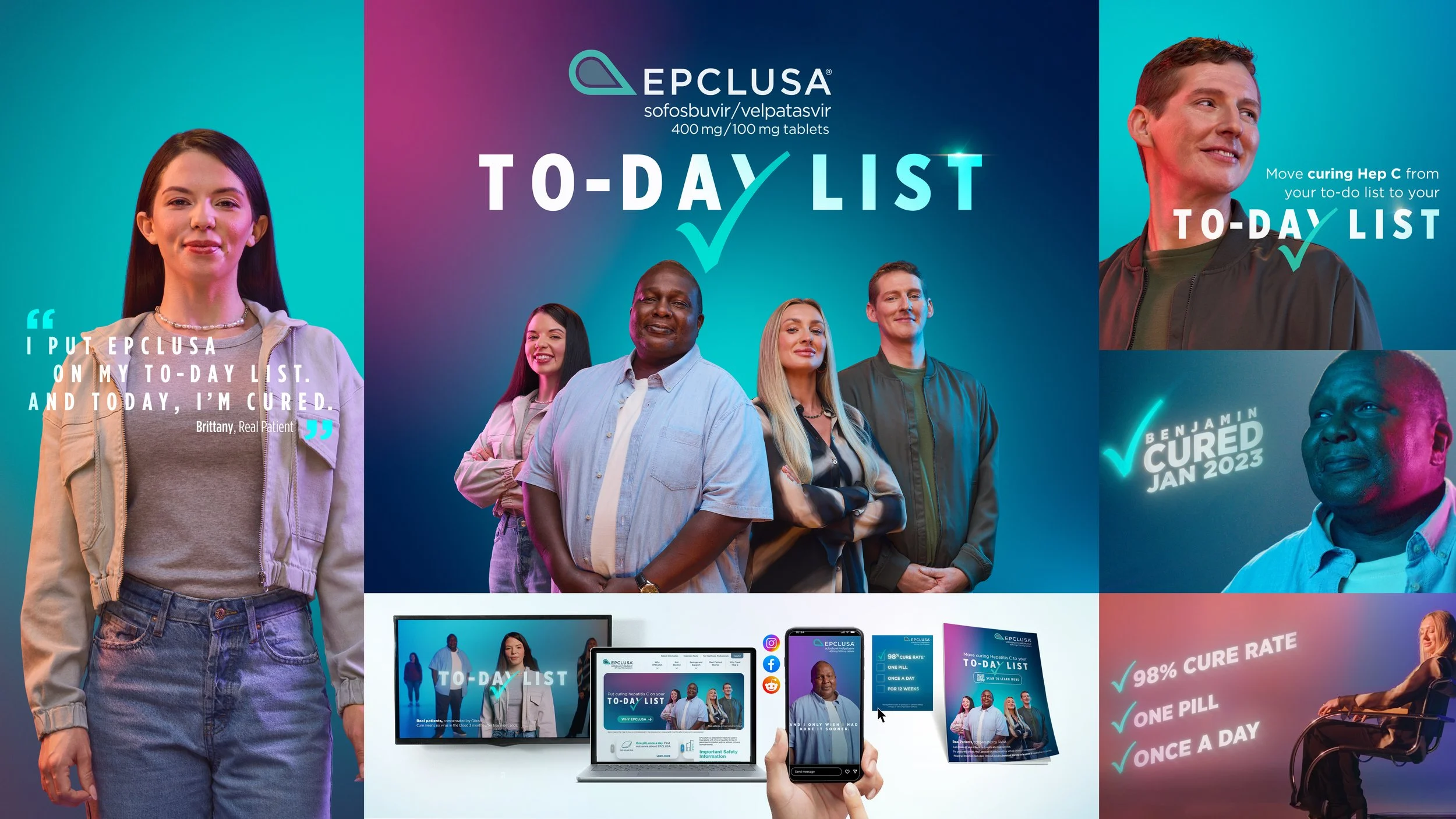 “The To-Day” List is a real-patient campaign designed to drive urgency around curing Hepatitis C with EPCLUSA. For many people in addiction recovery, treatment gets pushed aside as they focus on getting clean and rebuilding their lives—even as untreated Hep C becomes more dangerous over time. The campaign reframes getting cured as an immediate, life-changing step: moving it from their to-do list to their To-Day List.