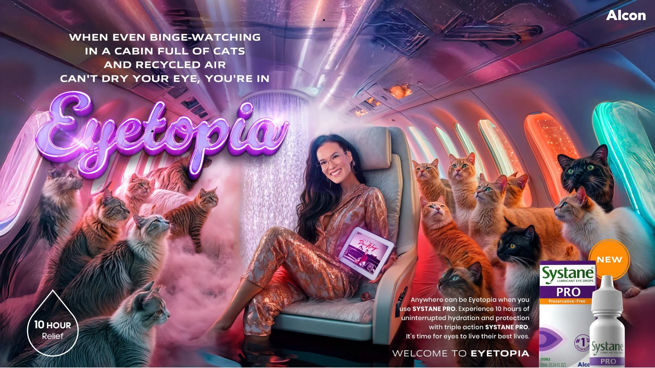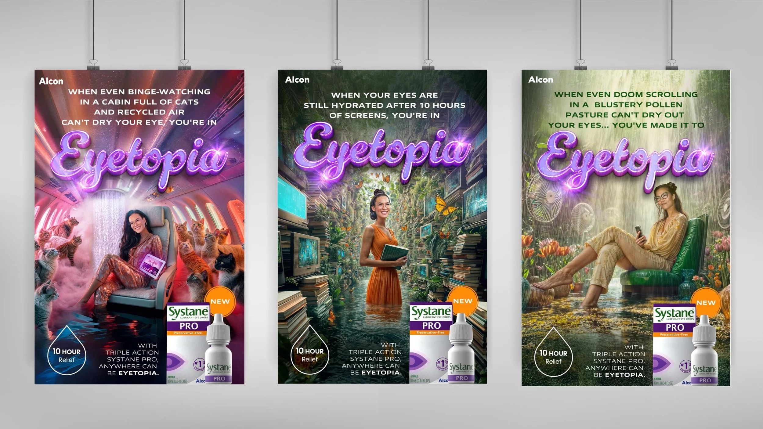 For this Alcon pitch, we explored multiple concepts built around a compelling promise: an Rx eye drop designed to tackle every dry eye symptom. The ideas brought fresh energy to the category, expressing total relief in ways that felt playful, human, and emotionally rewarding.